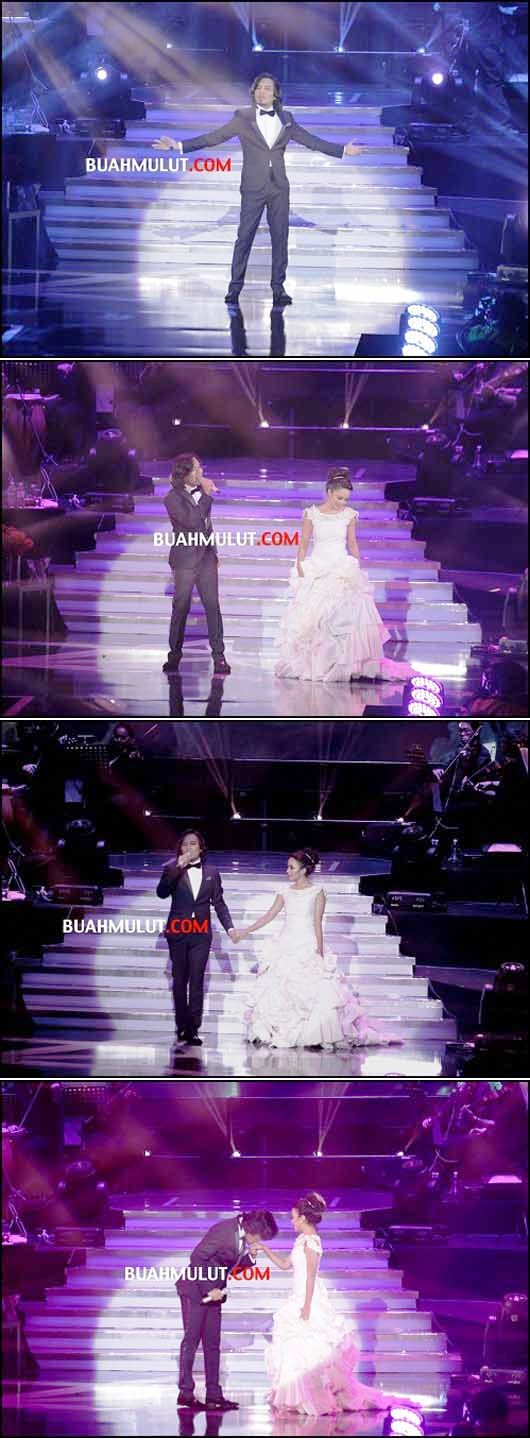 Anuar Zain yang sedang menyanyikan lagu Ajari Aku bertindak menarik tangan Nora Danish sebelum menciumnya dengan lembut dan romantik.