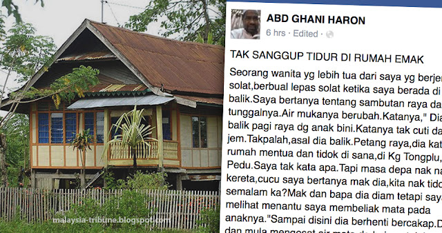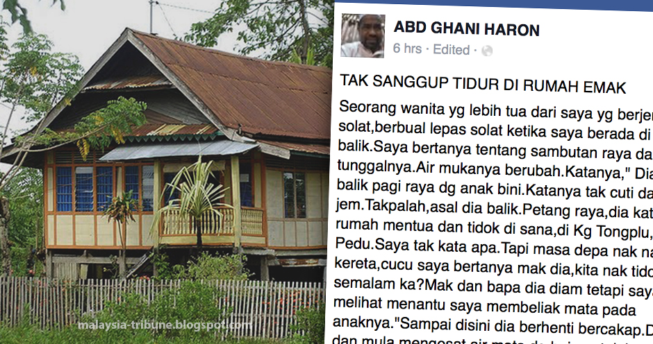 betul kata en ghani tu ... kalau ko banyak sangat duit .. besarkan dan cantikkan rumah orang tuakat kampung tu ... kalau tak boleh .. maknanya ko tak mampu tapi gatai nak balikkampung tapi tidur hotel atau ko anak tak sedar dek huntung ...
